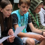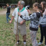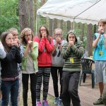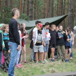 Poniedziałek tradycyjnie rozpoczęliśmy od zaprawy porannej, po której rozbudzeni udaliśmy się na apel. Następnie, po sytym śniadaniu, ze względu na niesprzyjającą pogodę, oglądaliśmy drugą część Minionków. Seans okazał się fajną rozrywką. Niestety, nasz kolega Maciek nie mógł uczestniczyć w zajęciach, ponieważ padł ofiara nieszczęsnego obozowego wirusa. Po filmie wszystkie zastępy rozpoczęły przygotowania do Korowiska – wylosowały swoje piosenki i konstruowały rekwizyty. Po obiedzie, na którym skosztowaliśmy słynnego białego barszczu, udaliśmy się na Dzień Ukraiński, przygotowany przez grupę z Ukrainy. Najciekawszym dla nas punktem programu było strzelanie z łuku. Pomiędzy zajęciami ochoczo korzystaliśmy z portu i kąpieliska. Dzień zakończyliśmy pośpiewają przy ognisku, a dla chętnych odbył się Koncert w Korzonku – śpiewał i grał dh Wołodia z Ukrainy. Koncert ten był bardzo fajny.
