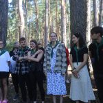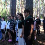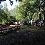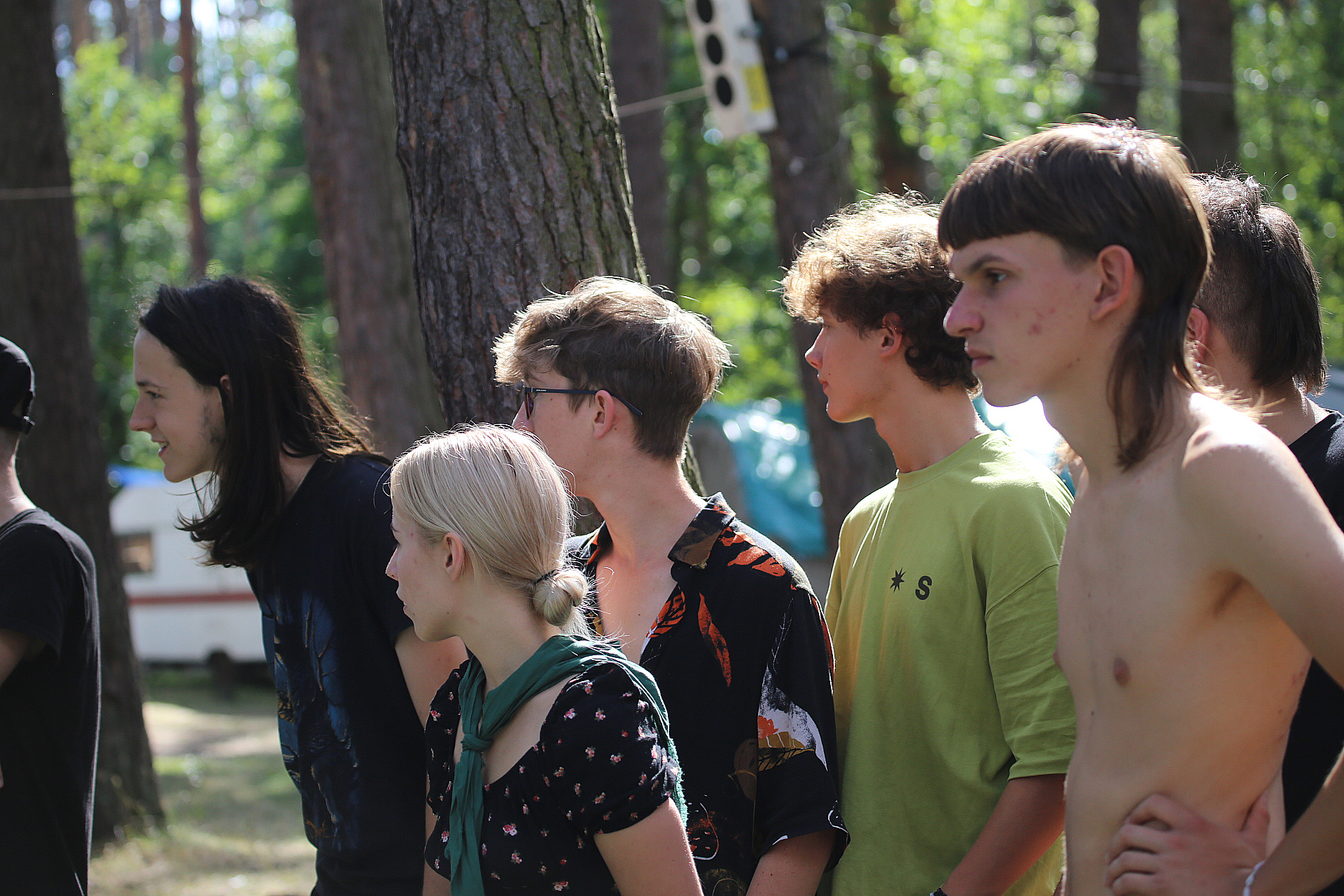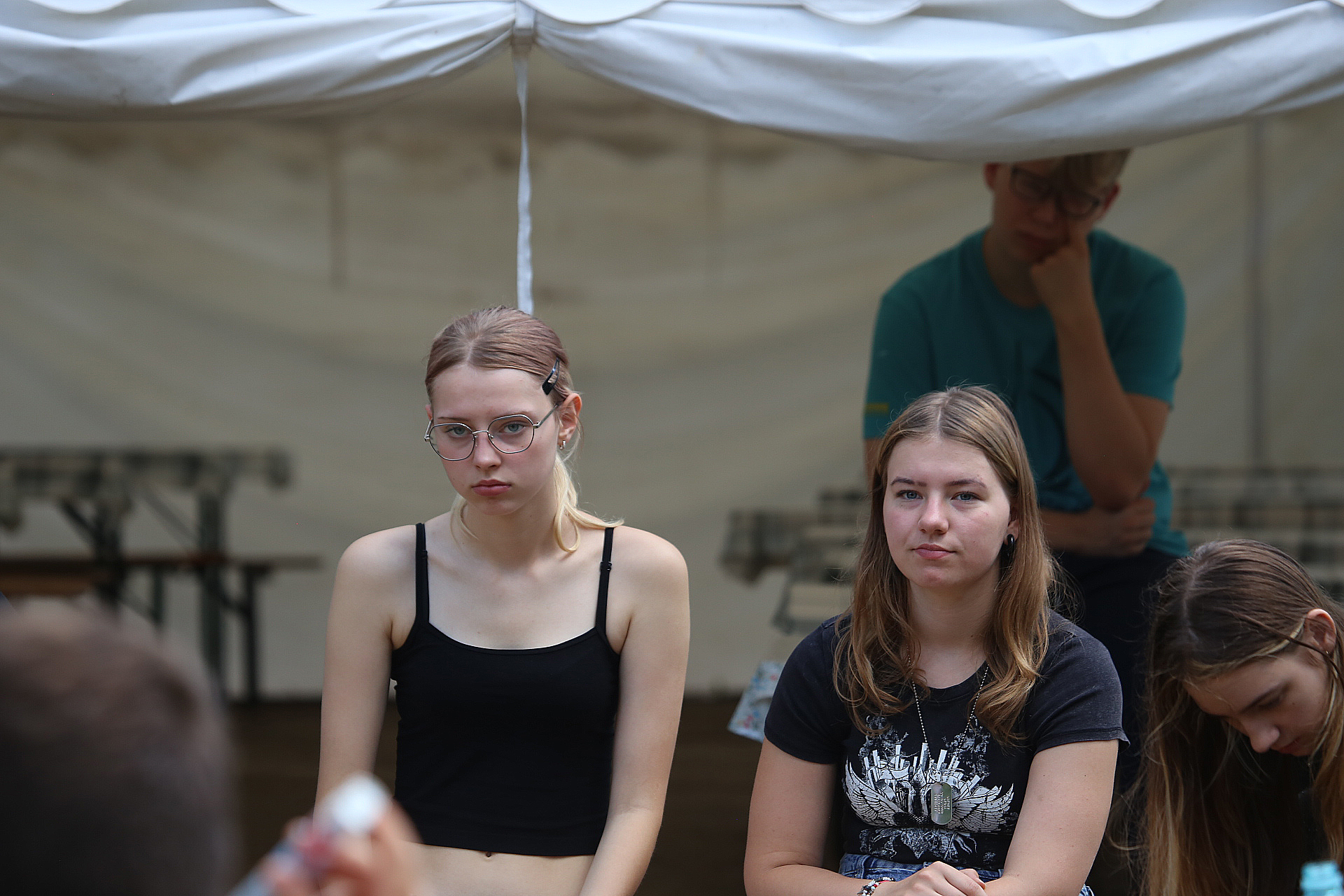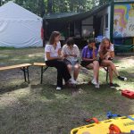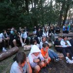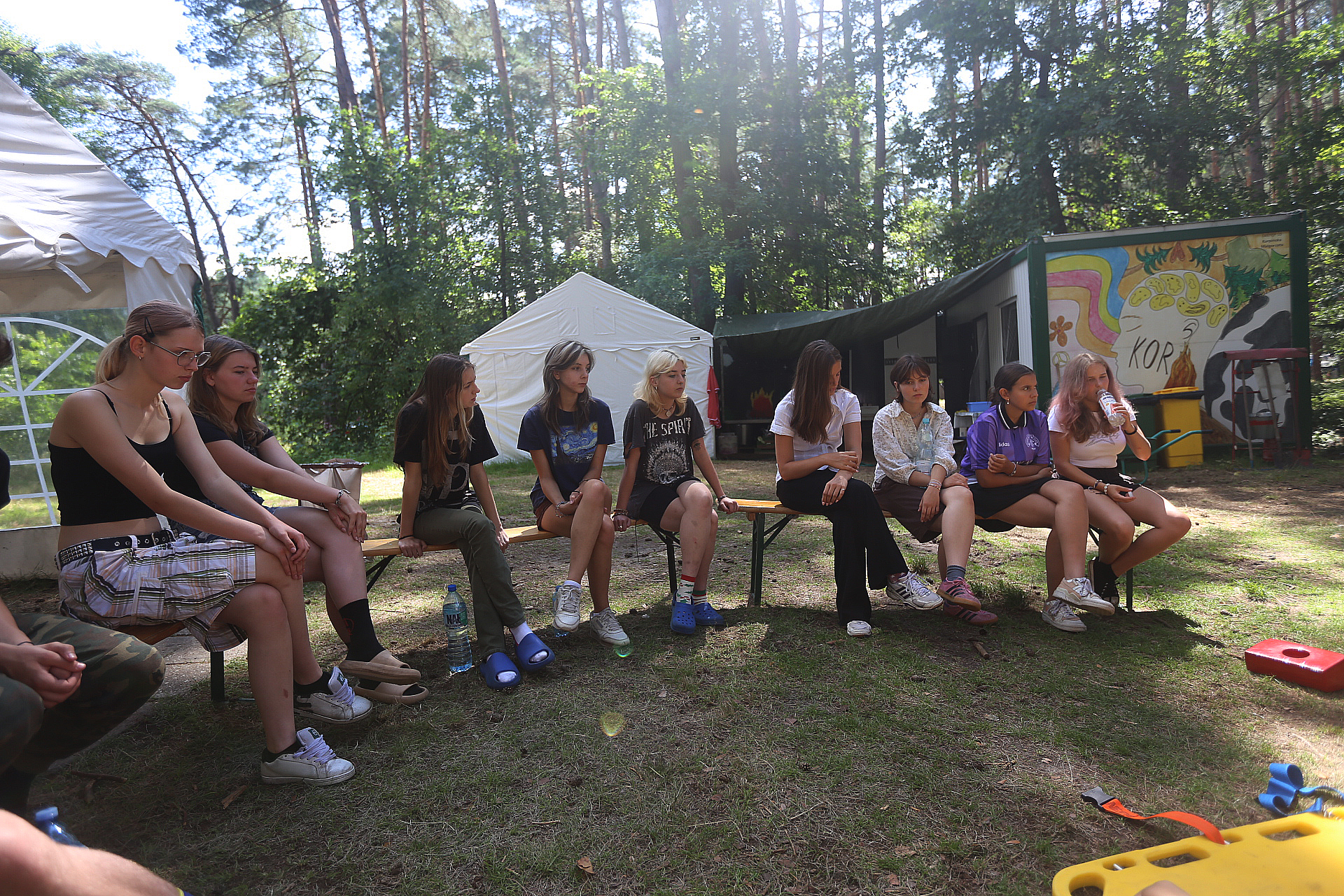 Następnie przeszliśmy na apel, podczas którego zapowiedziano warsztaty i grę wojenną zorganizowaną przez zastęp 7. Po pysznym śniadaniu było trochę czasu wolnego, po którym rozpoczęły się zajęcia przedpołudniowe. Obóz podzielono na 3 grupy, które poszły na swoje stacje. Na jednej z nich była gra w Mafię prowadzona przez naszego kochanego Jacusia. Na kolejnej stacji wyświetlono nam prezentację na temat sztucznej inteligencji i cyberbezpieczeństwa. Zajęcia przygotował dh Cohen. Na ostatniej stacji nasz kochany druh Mateusz prowadził warsztaty na temat wstrząsów i wypadków. Po przepysznym obiedzie wszyscy czekaliśmy na zajęcia popołudniowe czyli Grę Wojenną. Jednak przez wysoką temperaturę powietrza została ona zastąpiona dla jednych przez wycieczkę pieszo – pieszą, dla innych wyprawę kajakowo- kajakową. Gdy wróciliśmy do obozu okazało się, że mamy pilota! W miarę szybko uwinęliśmy się ze sprzątaniem i wróciliśmy do miłego spędzania naszego wolnego czasu. Wieczorem wszyscy zebrali się w kręgu na ognisko. Było dosyć tłoczno ze względu za Zlot Korczakowców zorganizowany z okazji 55 – lecia istnienia obozu. Następnie zostały rozdane chusty świeżo przybyłym Korwygom. Zamknęliśmy krąg i robiliśmy to samo, co Korczakowcy robią od ponad pół wieku – puściliśmy Iskierkę, a potem rozeszliśmy się do namiotów. Choć nie nasza piątka – my niczym pięciu muszkieterów, drużyna A, dwóch i pół Batmanów oraz dwóch i pól Robinów ruszyliśmy na służbę pod Korradio, aby pilnować obozu przed dzikami i Korwygami.
