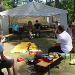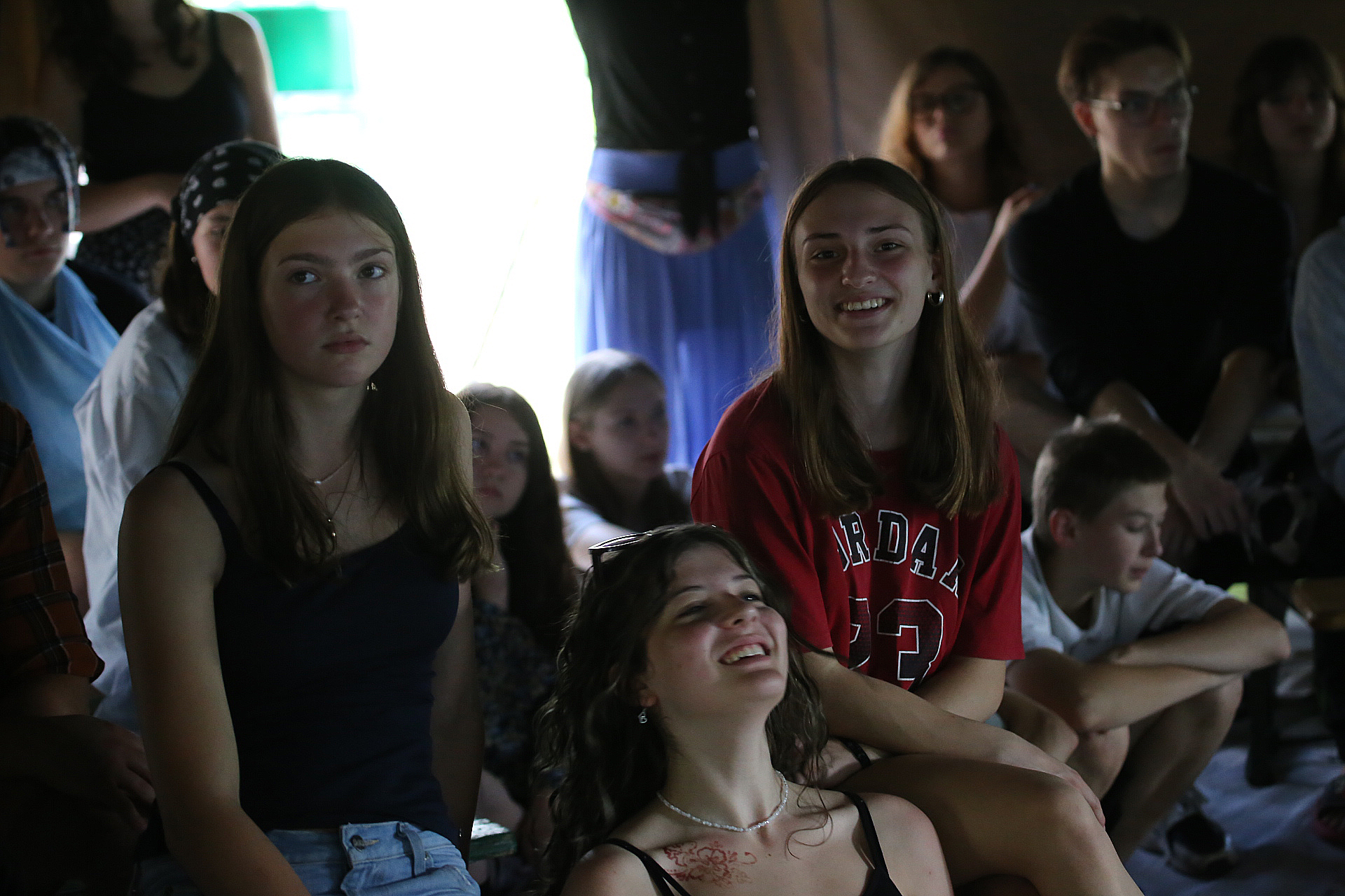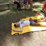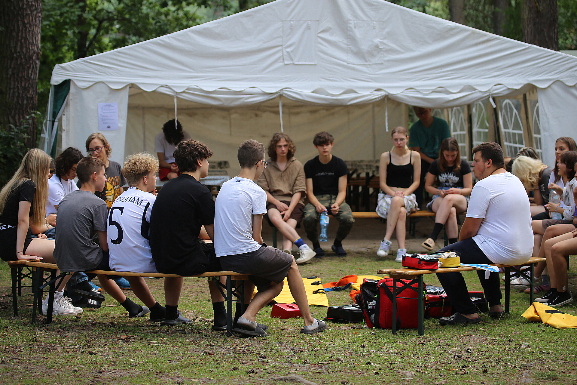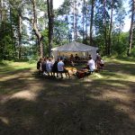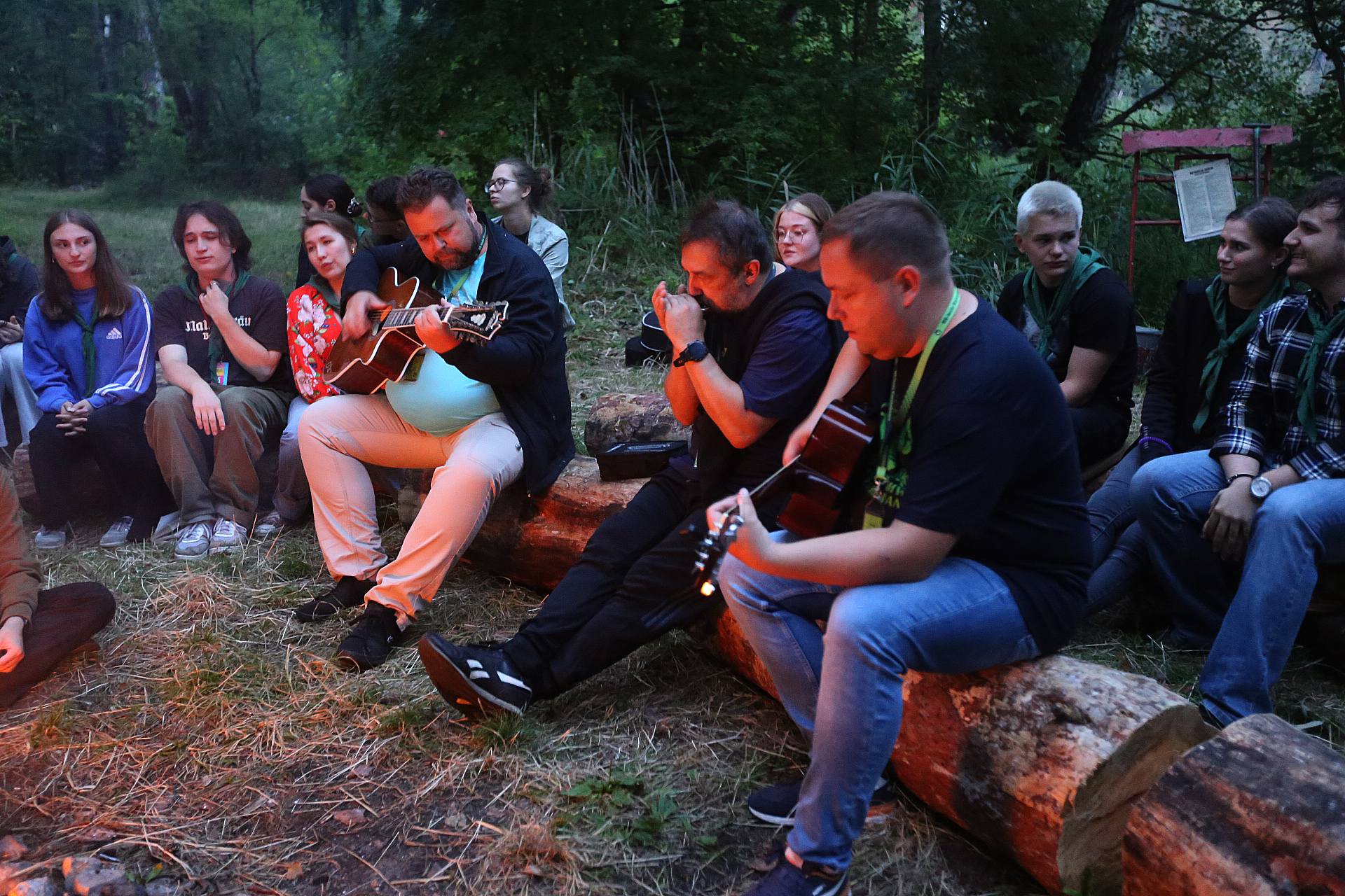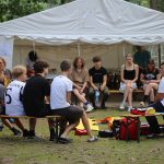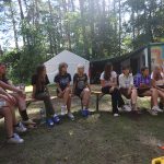 Następnie przeszliśmy na apel, podczas którego zapowiedziano warsztaty i grę wojenną zorganizowaną przez zastęp 7. Po pysznym śniadaniu było trochę czasu wolnego, po którym rozpoczęły się zajęcia przedpołudniowe. Obóz podzielono na 3 grupy, które poszły na swoje stacje. Na jednej z nich była gra w Mafię prowadzona przez naszego kochanego Jacusia. Na kolejnej stacji wyświetlono nam prezentację na temat sztucznej inteligencji i cyberbezpieczeństwa. Zajęcia przygotował dh Cohen. Na ostatniej stacji nasz kochany druh Mateusz prowadził warsztaty na temat wstrząsów i wypadków. Po przepysznym obiedzie wszyscy czekaliśmy na zajęcia popołudniowe czyli Grę Wojenną. Jednak przez wysoką temperaturę powietrza została ona zastąpiona dla jednych przez wycieczkę pieszo – pieszą, dla innych wyprawę kajakowo- kajakową. Gdy wróciliśmy do obozu okazało się, że mamy pilota! W miarę szybko uwinęliśmy się ze sprzątaniem i wróciliśmy do miłego spędzania naszego wolnego czasu. Wieczorem wszyscy zebrali się w kręgu na ognisko. Było dosyć tłoczno ze względu za Zlot Korczakowców zorganizowany z okazji 55 – lecia istnienia obozu. Następnie zostały rozdane chusty świeżo przybyłym Korwygom. Zamknęliśmy krąg i robiliśmy to samo, co Korczakowcy robią od ponad pół wieku – puściliśmy Iskierkę, a potem rozeszliśmy się do namiotów. Choć nie nasza piątka – my niczym pięciu muszkieterów, drużyna A, dwóch i pół Batmanów oraz dwóch i pól Robinów ruszyliśmy na służbę pod Korradio, aby pilnować obozu przed dzikami i Korwygami.