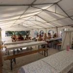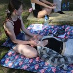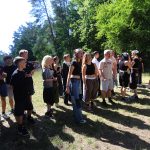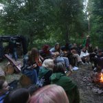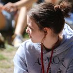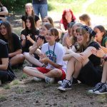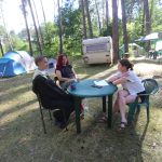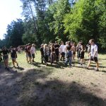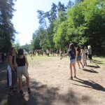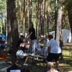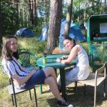 Wstałam wcześniej niż planowałam, mimo to i tak czułam się wypoczęta, co zdarzyło mi się pierwszy raz w tym roku. Zaprawa poranna o dziwo okazała się przyjemna i nie wymagała jakiegoś dużego wysiłku, co mnie miło zaskoczyło, bo bałam się, że mocno się spocę z samego rana. O śniadaniu nie ma co pisać. Jest uniwersalne, każdy może sobie nałożyć, co chce, a jedzenie jest świeże. Przerwy między zajęciami są długie, ale nie na tyle, by się znudzić. Ja podczas czasu wolnego chodziłam pomagać w przenoszeniu różnych rzeczy i w malowaniu ławek, bo osobiście lubię takie rzeczy. Na zajęciach stres, ponieważ osoby, które przyjechały na obóz po raz pierwszy, miały „test” odwagi, w którym niestety nie brałam udziału, bo już wcześniej opowiedziano mi, na czym polega ta zabawa. Byłam za to na drugim „teście” czyli zabawie w gwizdek, której nie opiszę, bo osoba, z którą siedzę, jeszcze w to nie grała, ale mogę rzec, że była to niezła frajda i dałam się wrobić. Co do warsztatów to zapisałam się na robienie biżuterii z koralików/muliny, jednak zmienię je na inne, bo nie przypadły mi do gustu. Cały dzień czułam się pełna energii i w porównaniu do innych obozów zaaklimatyzowałam się bardzo szybko. Miła atmosfera sprzyjała dzięki otwartym i sympatycznym osobom, które od razu polubiłam (pomijając wyjątki, ale nie uważam tego za wadę, tylko normalną rzecz). Jedyna rzecz, która mnie przytłacza, ale na którą się przygotowałam, to że nie ma miejsca, gdzie mogę pobyć kompletnie sama choć na chwilę. Pod wieczór, w okręgu wieczornym (chyba tak się to nazywało), śpiewaliśmy wspólnie, co jest fajnym zakończeniem dnia. Poszłam także na koncert przygotowany przez druha Komendanta Młodego. Koncert był ciekawy i fajny. Podsumowując – ten dzień był przyjemny i produktywny, a atmosfera panująca wokół sprawia, że nie jestem zmęczona cały czas, jak zazwyczaj.