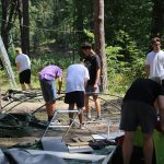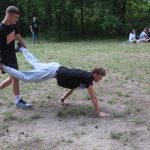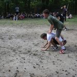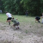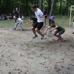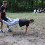Dzień standardowo zaczęliśmy śniadaniem w towarzystwie naszych korczakowskich przyjaciół. Następnie, w ramach zajęć porannych, odbył się Turniej Firmowy, w którym cały obóz został podzielony na dwie drużyny: Nugaty i Gwardia Mariusza. Obie drużyny rywalizowały ze sobą w przeróżnych konkurencjach, takich jak pchanie taczek, wyścigi rzędów czy głuchy telefon. Następnie była chwila czasu wolnego, po której udaliśmy się na obiad.