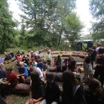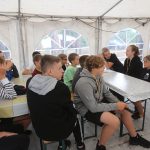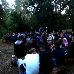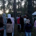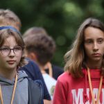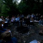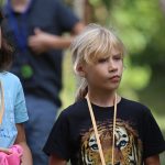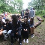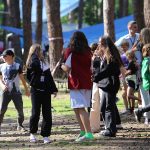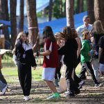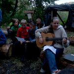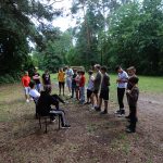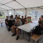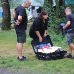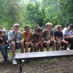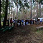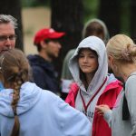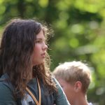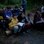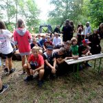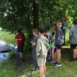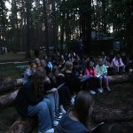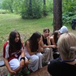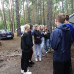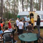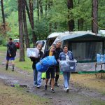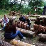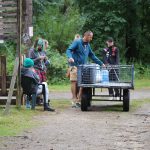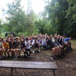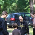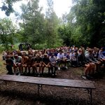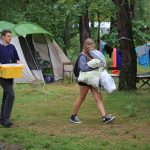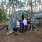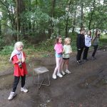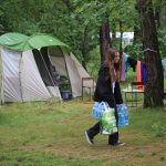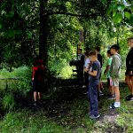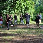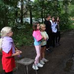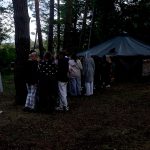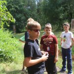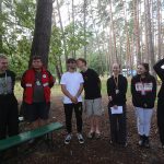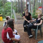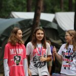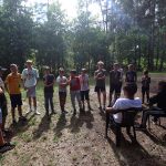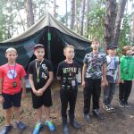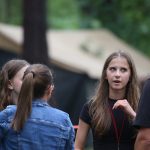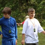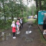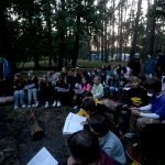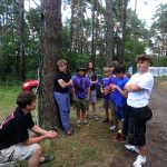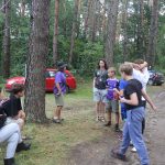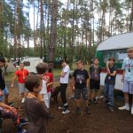 Po obiedzie poznawaliśmy regulaminy, a odbywało się to w taki sposób, że podzielono nas na grupy i chodziliśmy w różne miejsca Korczakowa, by poznać zasady tam obowiązujące. Pierwszą naszą stacją było kąpielisko, gdzie druh Ratownik przedstawił zasady bezpiecznych zachowań podczas zajęć. Dalej odwiedziliśmy boisko, bramę, toitoje, łaźnię, stołówkę, radio, ambulatorium, port , krąg i komendę. Następne zajęcia to zabawy integracyjne. Niektórym z nas się podobały, innym średnio. Najlepszy był „Pony” i „Kot i mysz”. Wieczorem, przygotowując się do otwarcia obozu, chodziliśmy w grupach po obozie, spotykaliśmy Elfy i rozwiązywaliśmy różne zadania i zagadki. Dzięki temu dotarliśmy do miejsca rozdawania chust czyli na Plac Korczaka. Potem był jeszcze pierwszy krąg wieczorny, a towarzyszył mu poważny, magiczny, tajemniczy nastrój. Iskierka dotarła do Komendanta.